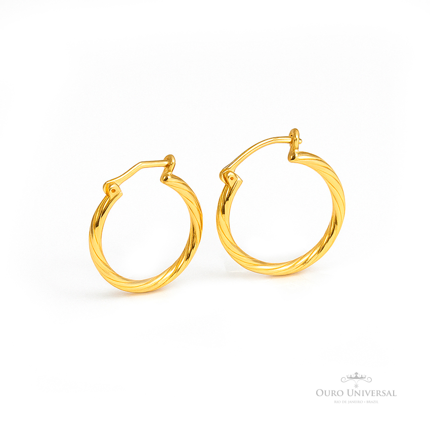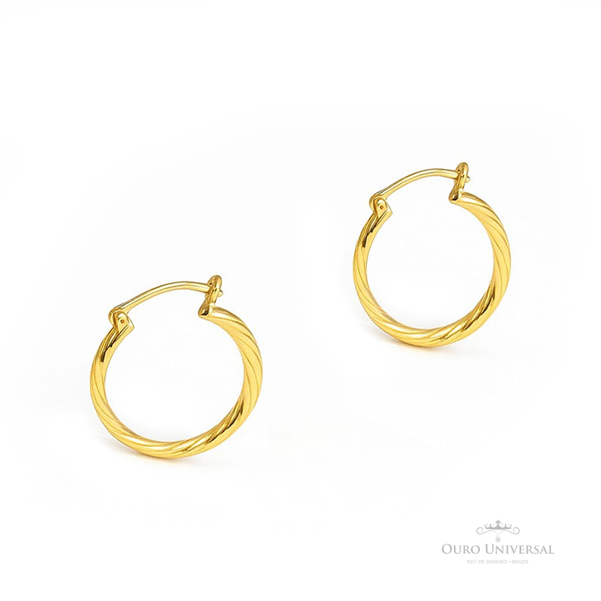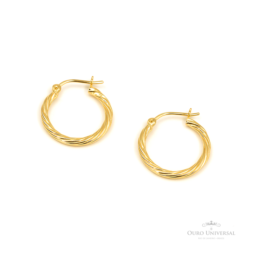 Brinco Argola Tubo Torcida de encaixe com diâmetro interno 1.5 cm e 1.5 cm de espessura do fio em ouro amarelo 18 k, teor 750.