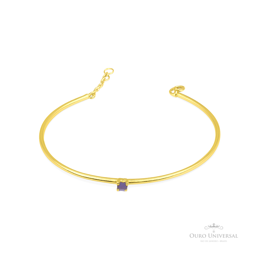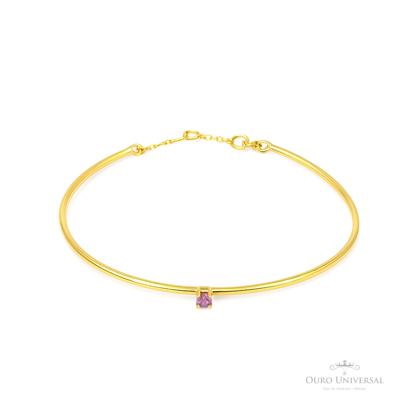 Bracelete Zircônia Ametista com corrente cadeado cartier diamantado de 2.5 cm com ajuste no 1.5 cm em ouro amarelo 18k , teor 750.