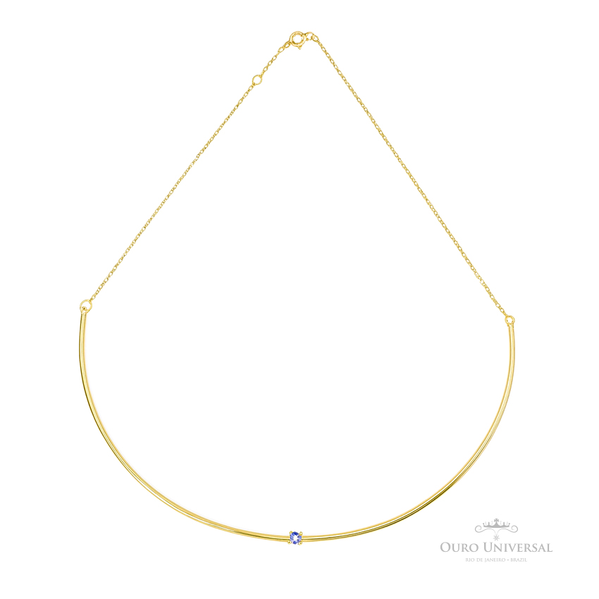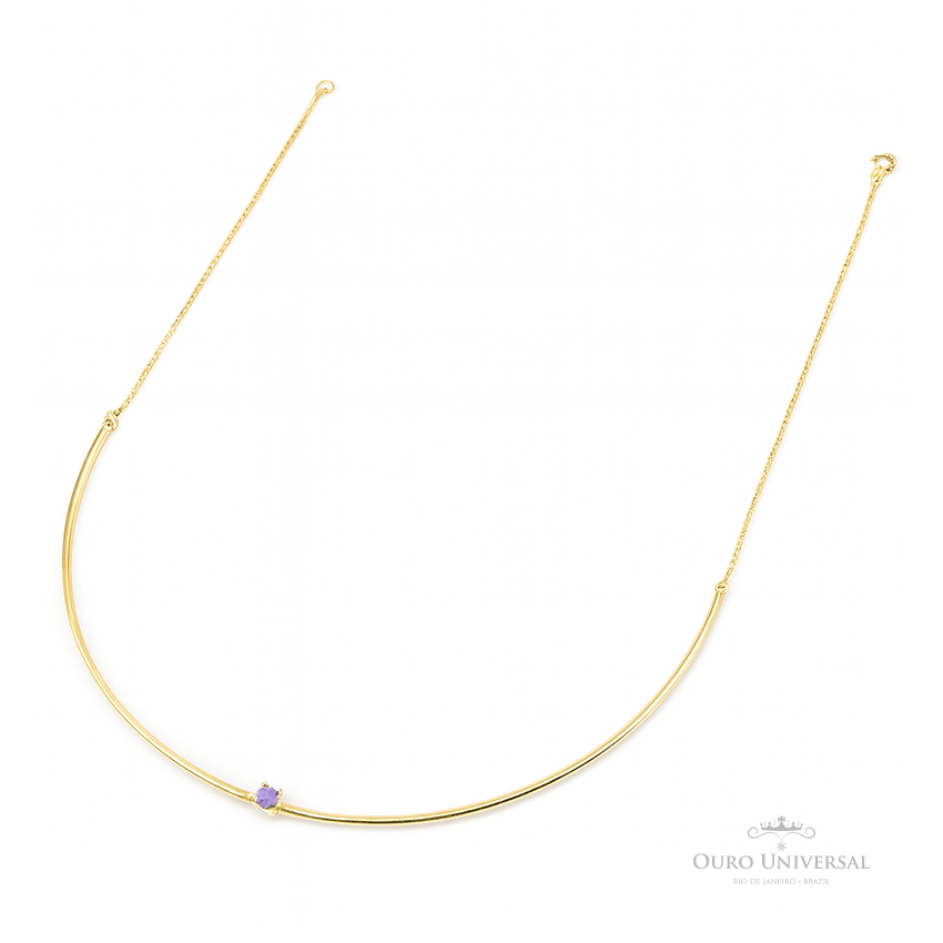 Meio Aro Zircônia Ametista com Corrente Cadeado. Medindo a curvatura do aro 11.0 cm e 10.0 cm de corrente de cada lado em ouro amarelo 18 k, teor 750.