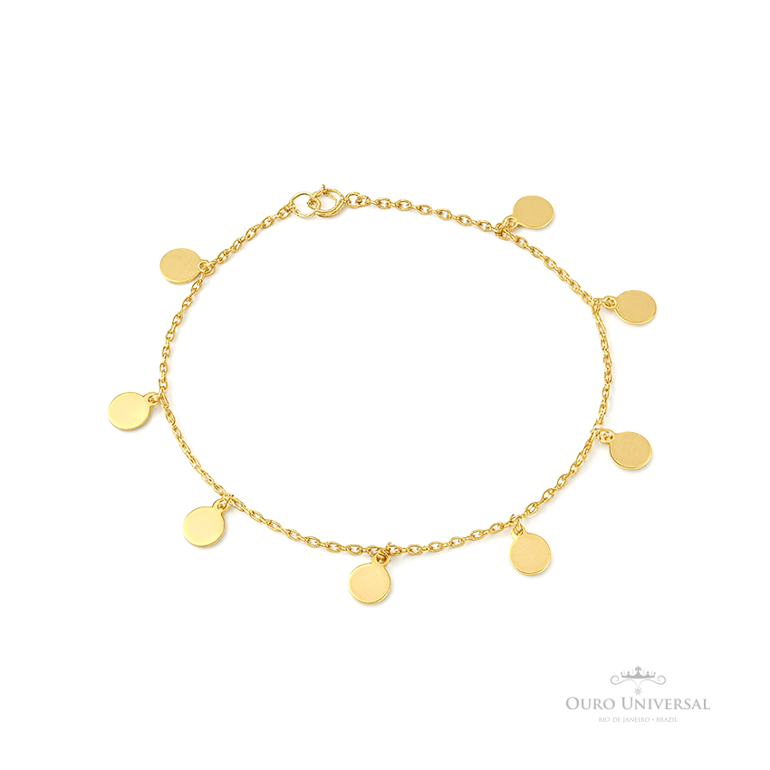 Pulseira com 8 Pingentes de Círculos Pendurados com 20.0 cm de comprimento com ajuste no 18.0 cm em ouro amarelo 18k, teor 750.